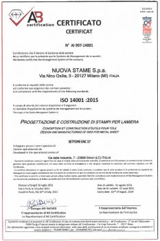 Nuova Stame S.p.a. has attained certification of its Quality System in accordance with the ISO 9001:2000 and ISO 14001:2004 standards.